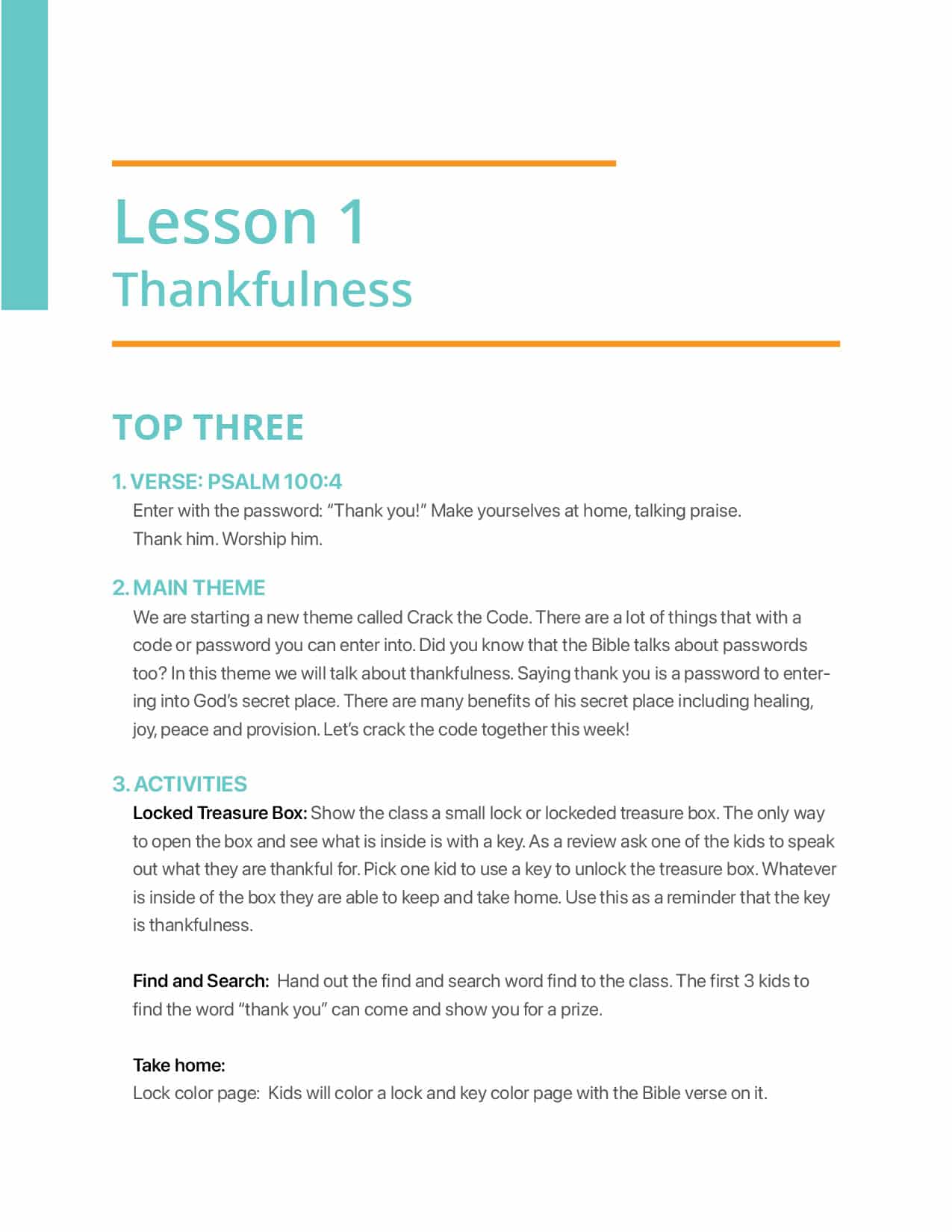 Lesson 1: Thankfulness