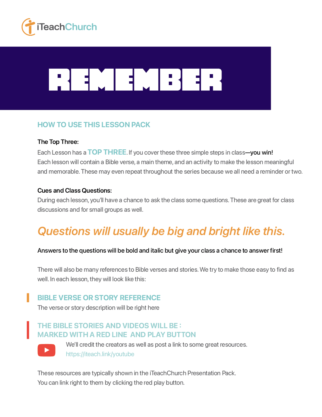 Join the iTeachChurch community and get access to our entire library of Lessons, Presentation Files, Games, Teacher Notes, and more!